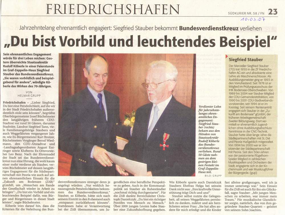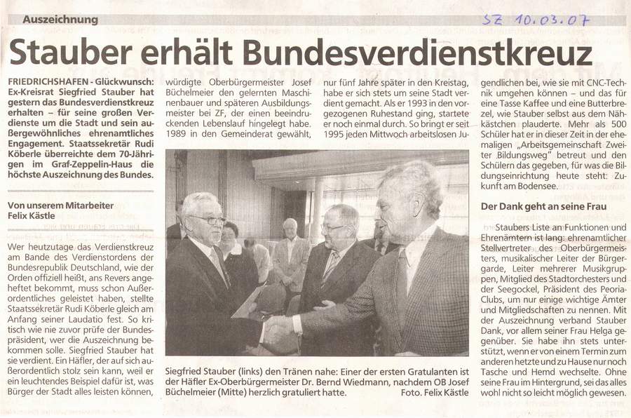 Past-President Siegfried Stauber mit Bundesverdienstkreuz ausgezeichnet